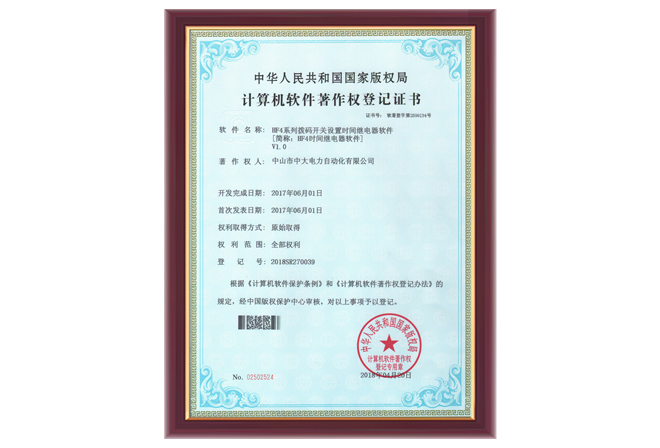HF4系列軟件著作權登記證書